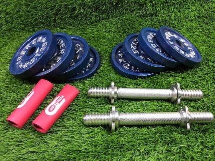 Eight Pieces Dumbbell Set With Two 10 inch Sticks – 10Kg – Blue and Silver Combo