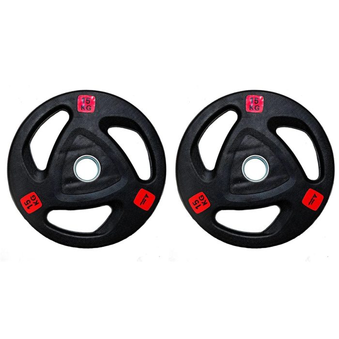 Product details of Olympic Tri-Grip Rubber Coated Black Plate – 15 KG – 1pair/2 pcs – Sports Paragon