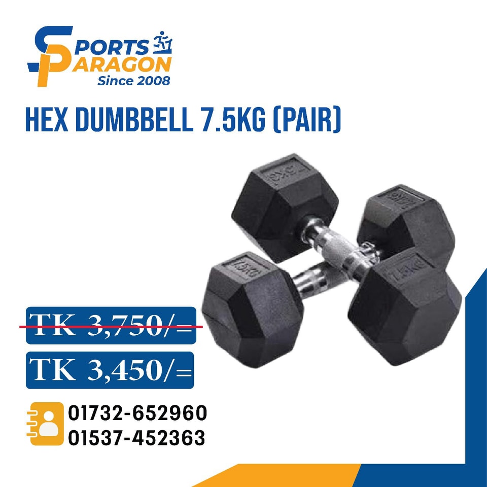 Rubber Coated Hex Dumbbells 1 Pair 7.5KG = 15KG (Made in China) Per kg 230tk